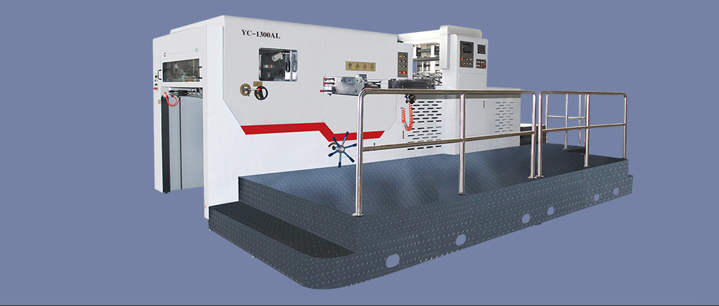 YC-1300AL leading edge paper-feeding automatic flat-bed die-cutting machine or down-suction paper-feeding automatic flat-bed die-cutting machine is suitable for die-cutting and creasing of high-grade color boxes. This machine adopts high-strength lower opening teeth and gripper row, integral swinging front gauge, automatic push gauge, high-precision intermittent mechanism, pneumatic locking plate, pneumatic clutch, overload protection, and automatic paper delivery, which realizes short feeding distance and positioning. Accurate, stable die-cutting, neat delivery, and die-cutting without gripper, with high production efficiency. The application of microcomputer control realizes the automation of the whole process of the whole machine, and the working conditions and troubleshooting methods are displayed through the man-machine interface. The key components, control systems and fasteners are imported products and carefully assembled to ensure the safety and reliability of the machine. There are many sensors and safety devices to ensure the normal operation of the machine and personal safety.
