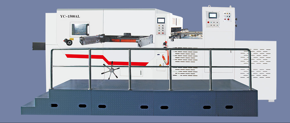 YC-1300/1500/1650AL leading edge paper-feeding automatic flat-bed die-cutting machine or down-suction paper-feeding automatic flat-bed die-cutting machine is suitable for die-cutting and creasing of high-grade color boxes. This machine adopts high-strength lower opening teeth and gripper row, integral swinging front gauge, automatic push gauge, high-precision intermittent mechanism, pneumatic locking plate, pneumatic clutch, overload protection, and automatic paper delivery, which realizes short feeding distance and positioning. Accurate, stable die-cutting, neat delivery, and die-cutting without gripper, with high production efficiency. The application of microcomputer control realizes the automation of the whole process of the whole machine, and the working conditions and troubleshooting methods are displayed through the man-machine interface. The key components, control systems and fasteners are imported products and carefully assembled to ensure the safety and reliability of the machine. There are many sensors and safety devices to ensure the normal operation of the machine and personal safety.